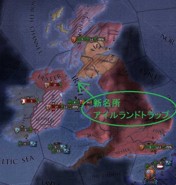 アイルランド島内に閉じ込められ無力化された5万の兵士。 この後、調子こいて見逃していたスコットランド守備隊に占領地を全て奪回される始末。驕りは身を滅ぼす。