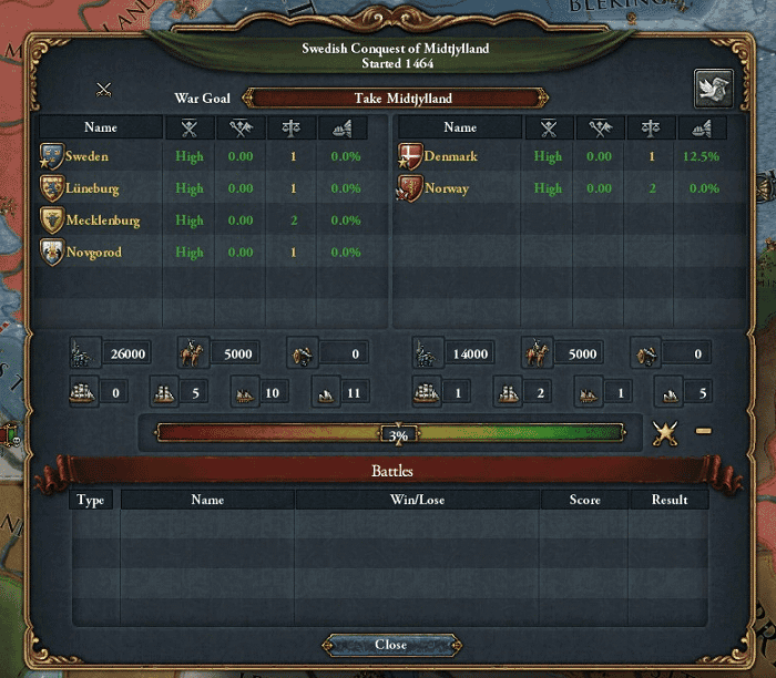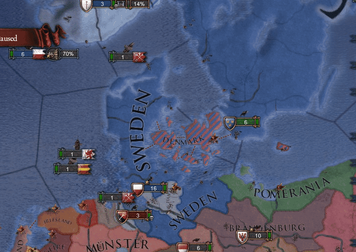 デンマークとは15年近くの停戦期間が設定されているため、北欧方面はしばらく動けませんな。