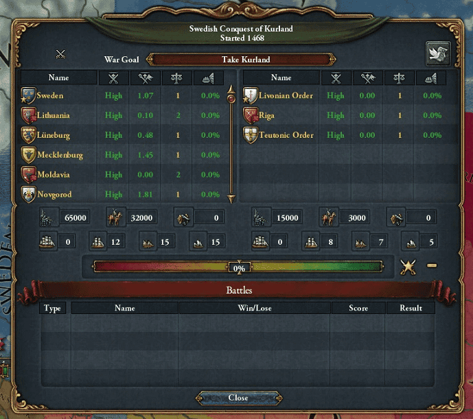 デンマーク=ノルウェーとは停戦中、リヴォニア騎士団は属国化を完了。