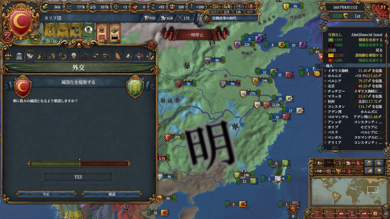これを使うことでウズベクや中華諸侯も属国化できます。