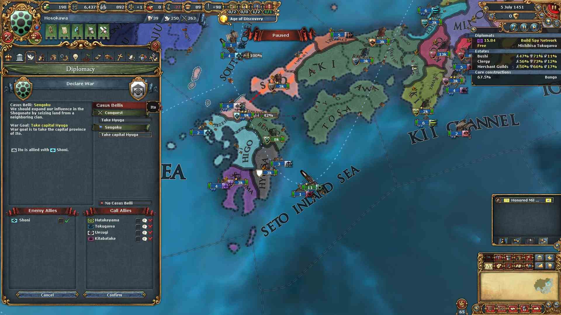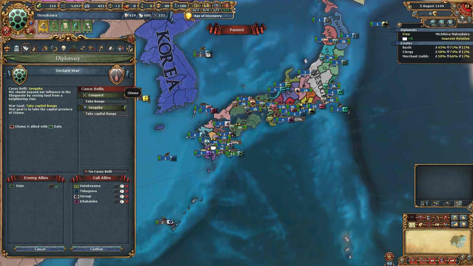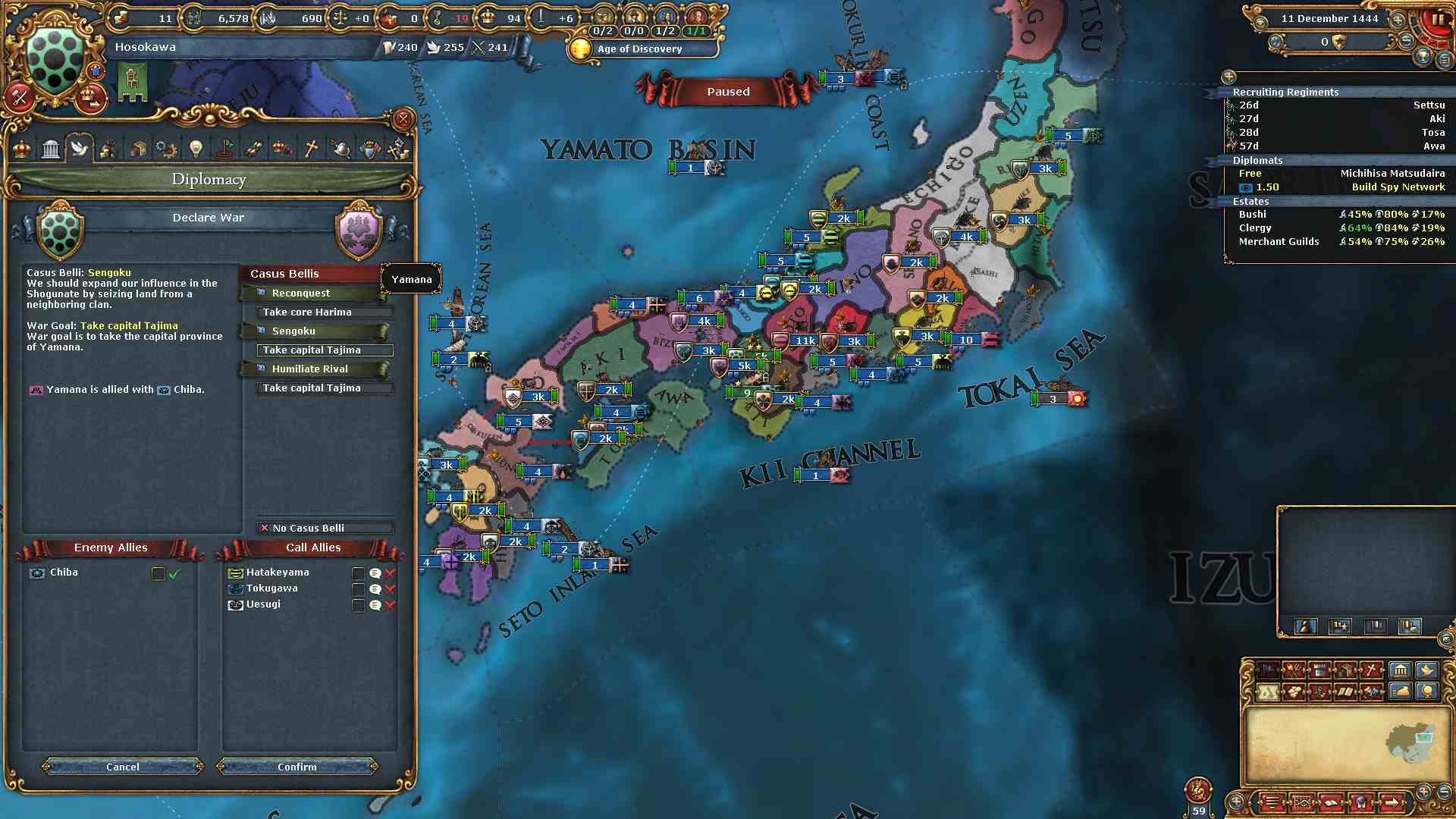 日本の大名家の宣戦事由である「戦国CB」で戦争をしかけます。