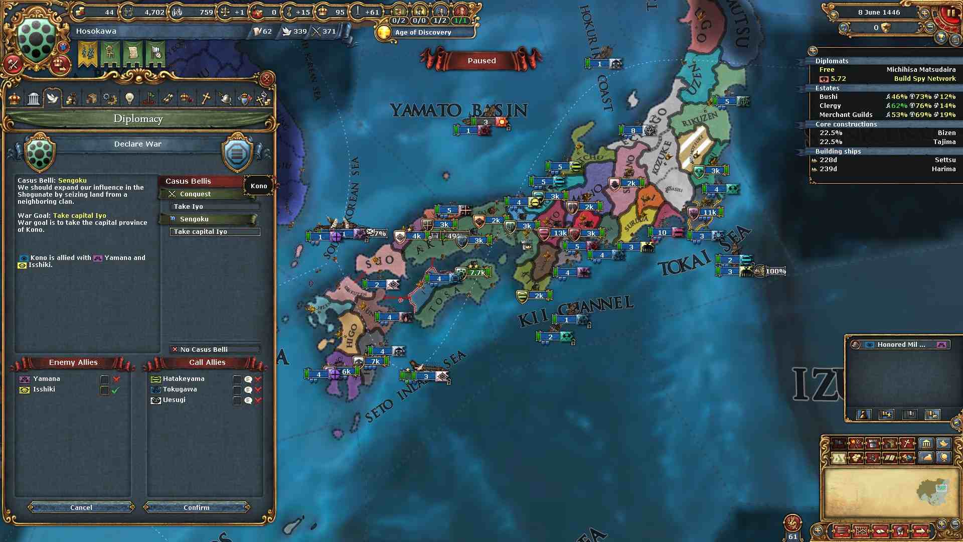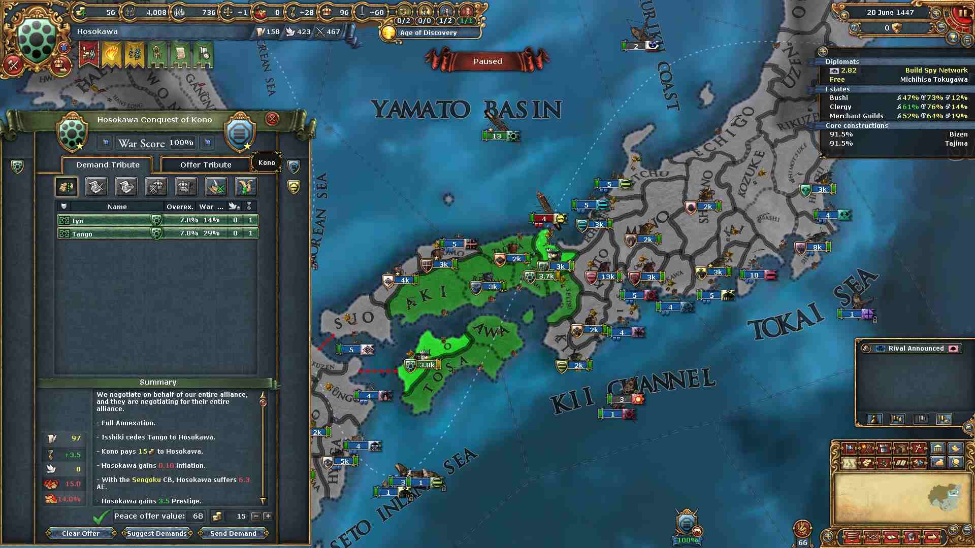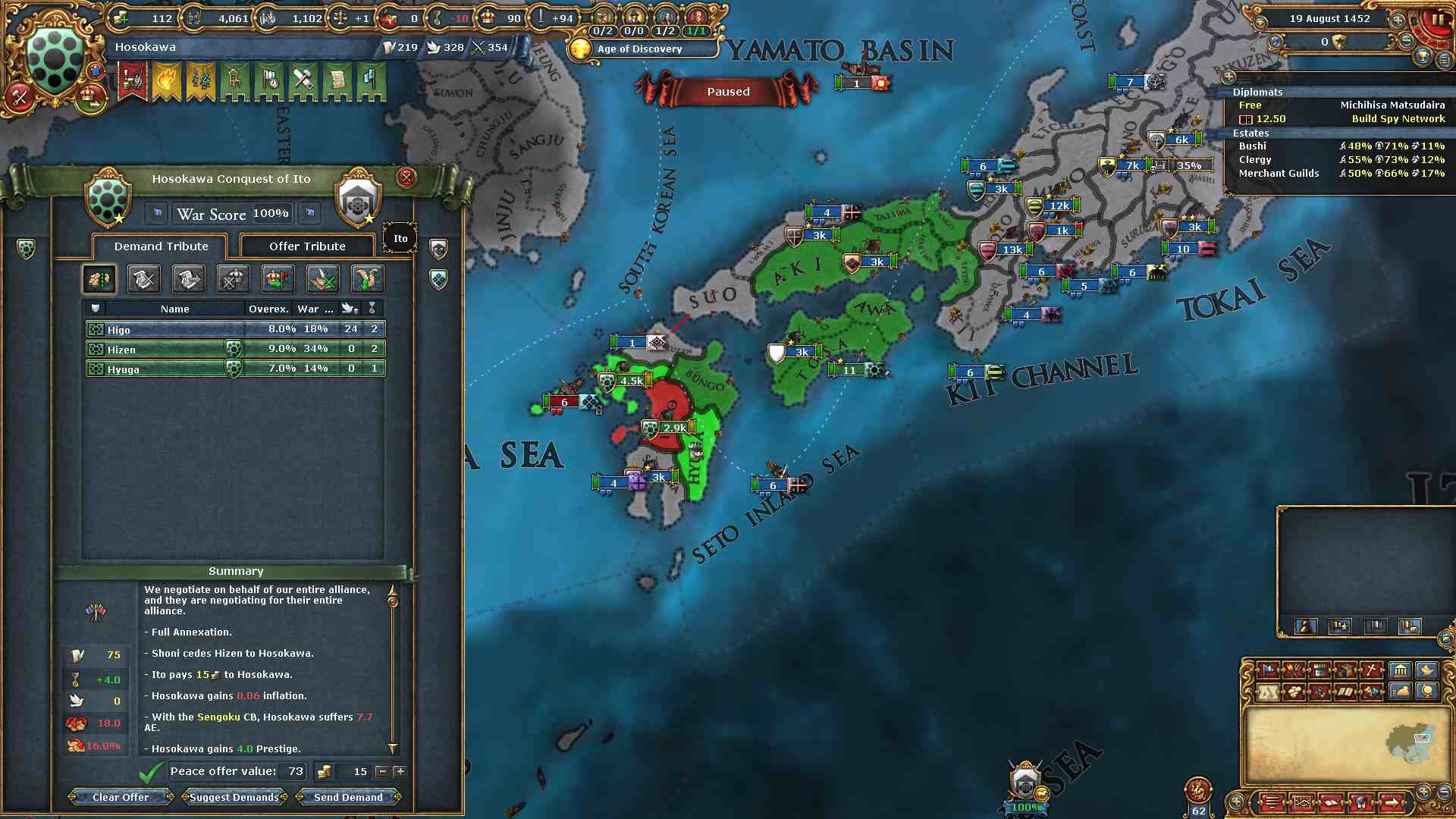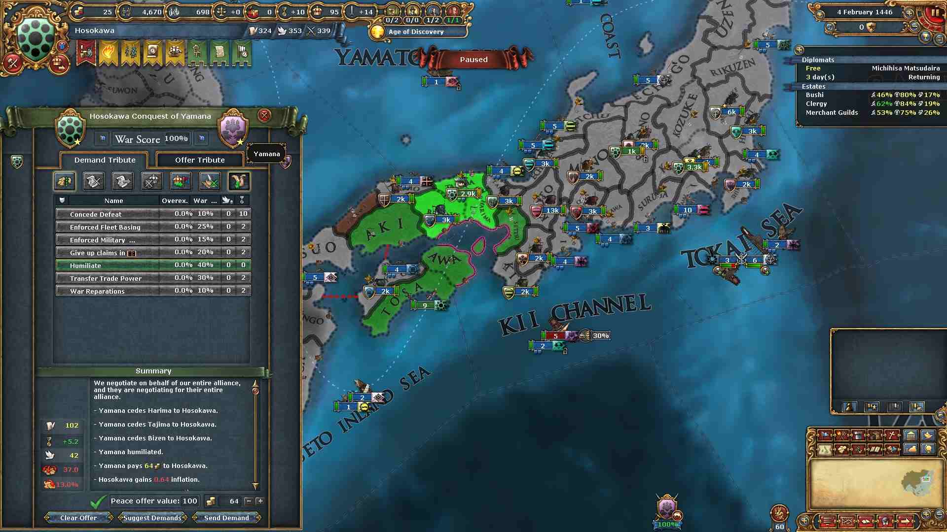 この時期の戦争では、個別和平での割譲や最初の山名戦以外はクレームのない州の割譲は行いません。