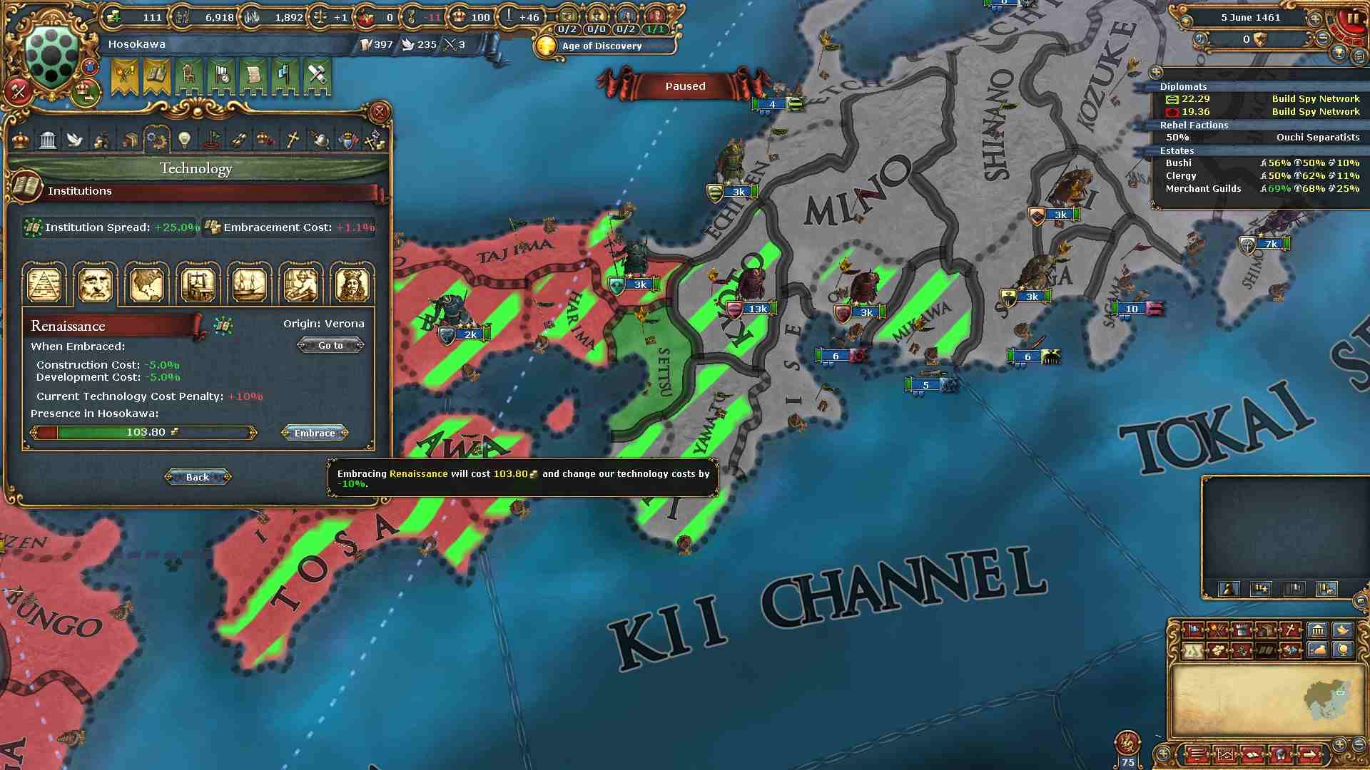 まずは西日本の制圧およびルネッサンスの受容までを目指します。