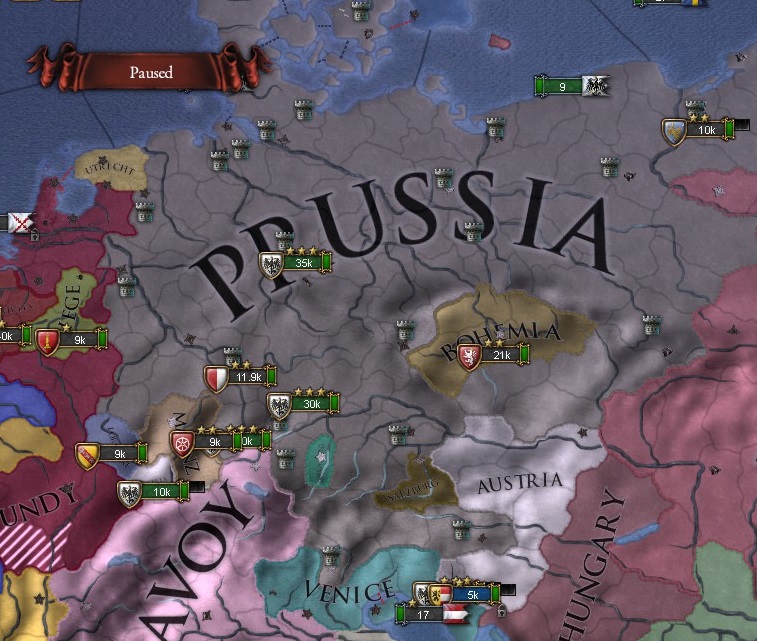 速攻でオーストリア、マインツを確保してブルゴーニュをサクサク討伐。