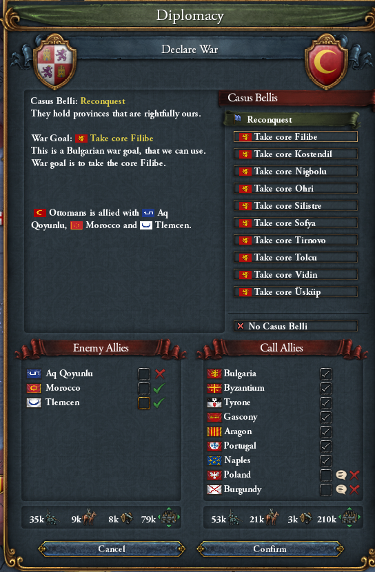 そして、ブルガリアのコア州を変換してもらうためオスマンに宣戦布告しました。返してもらおう!!!