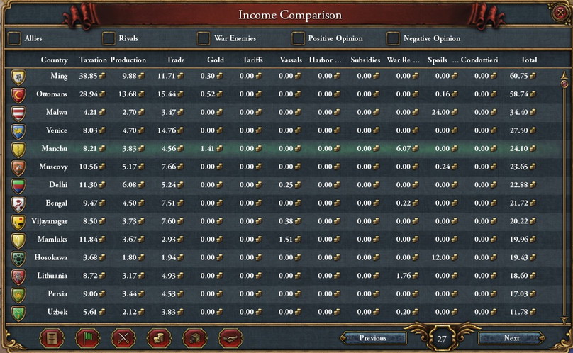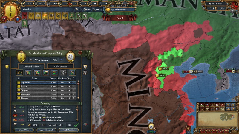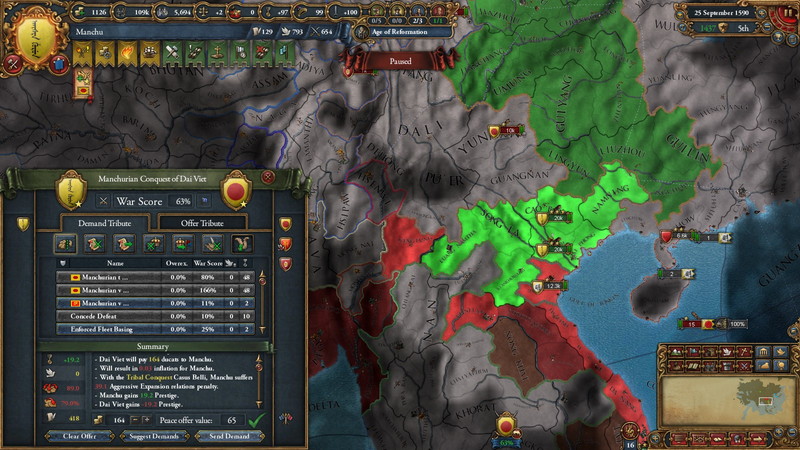 1.Haixiからは土地よりも資金を巻き上げた。全土を併合すると190ducatばかりが国と一緒に消滅するため。