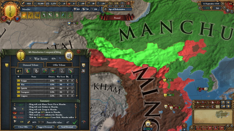 5.今後、明からはArea単位でProvinceを取得し、残りは十年間の賠償金と即金を貰う。