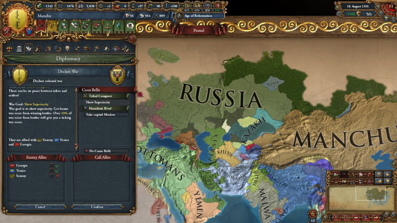 7.たぶん何度やっても、1456頃までに宣戦するのが一番楽に勝てる。