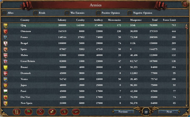 一方軍の質は、満州時代に比べてほんの少し他国より強いぐらいまで落ちるので、騎兵力の代わりに資金力で勝負する国になりました。