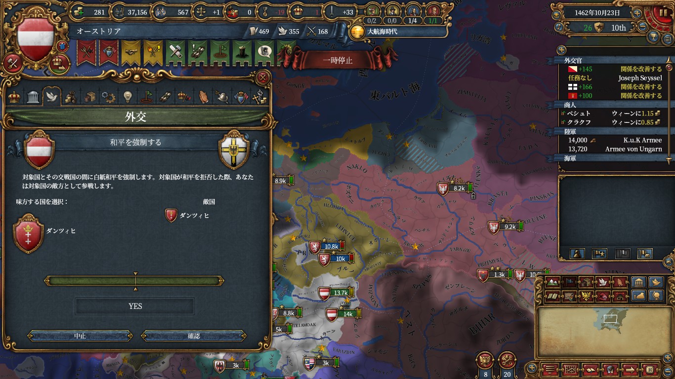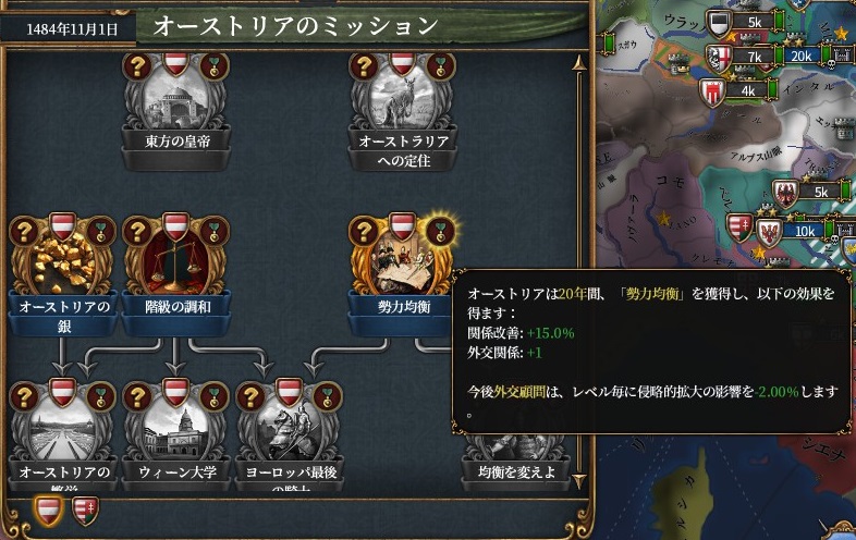 戦中に列強かつ5回戦争に勝利したのでミッション「勢力均衡」達成