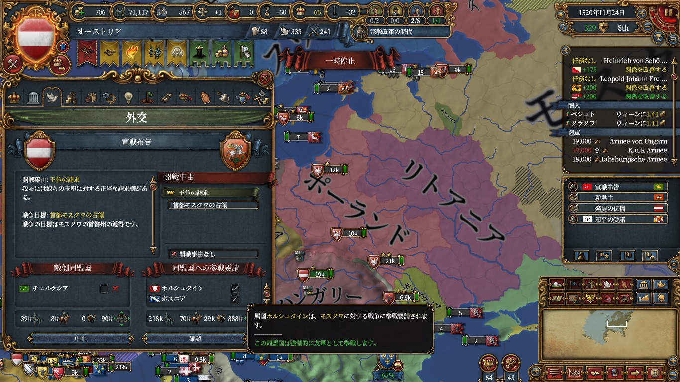 同君を要求するよりもIA(12ぐらい増えた)を稼げて、諸侯数も増えるので低地の解放を選びました