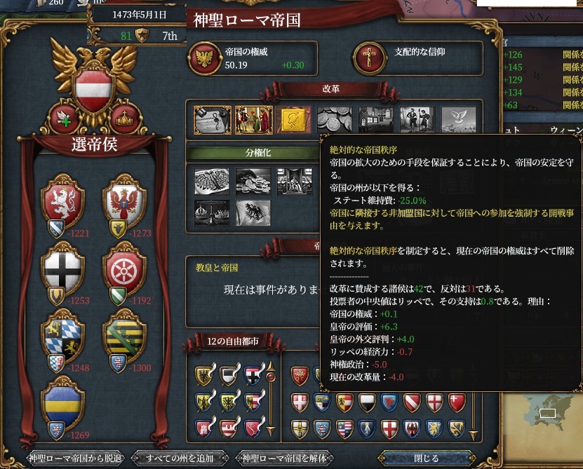 これで非HRE諸侯がHRE領を領有するペナルティの大部分が消えてくれました。