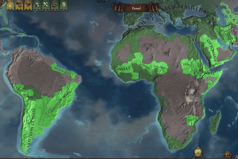 アフリカ全土が神聖ローマ帝国の直轄領、もしくは保護領として影響下に入り、新大陸でも約3分の1が神聖ローマ帝国の植民地国家となっていました。