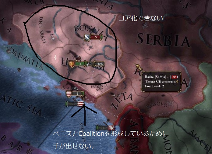 ラグザを手に入れて、旧ボスニア領をコア化しないことには意味がないので、
