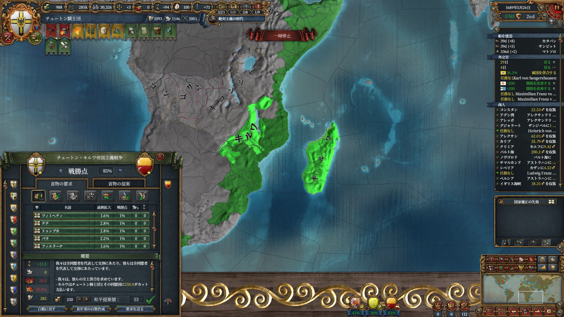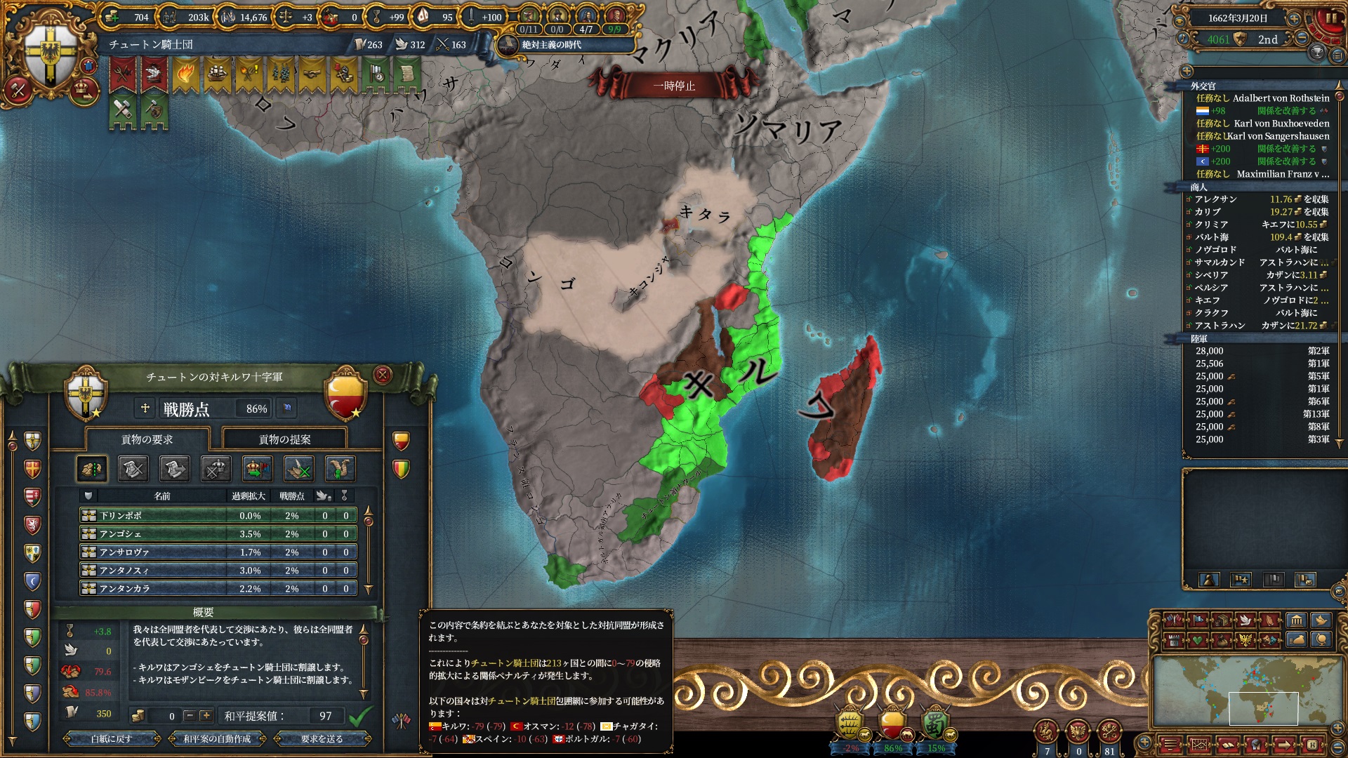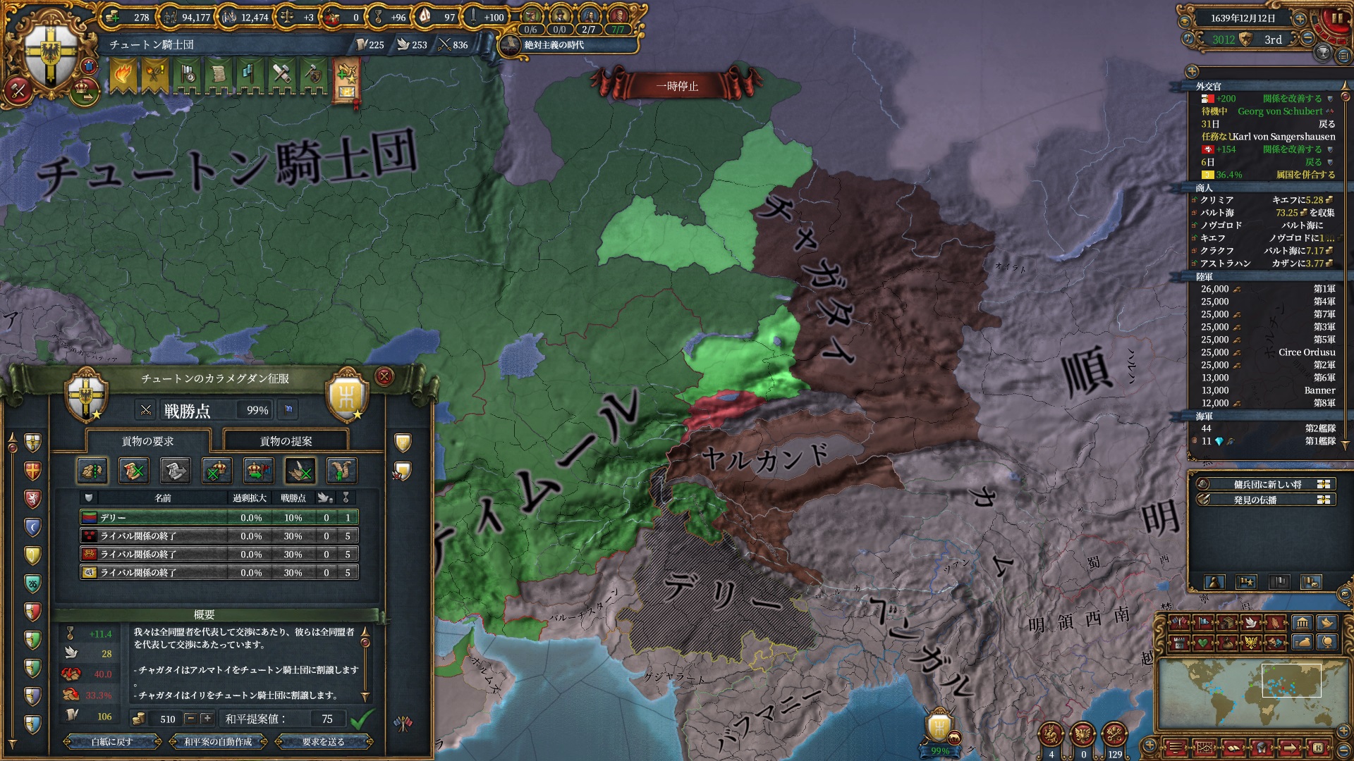 マムルーク併合さえ済ませばそろそろ取れるHoly Hordeで思う存分南下出来るので待ち遠しいですね。