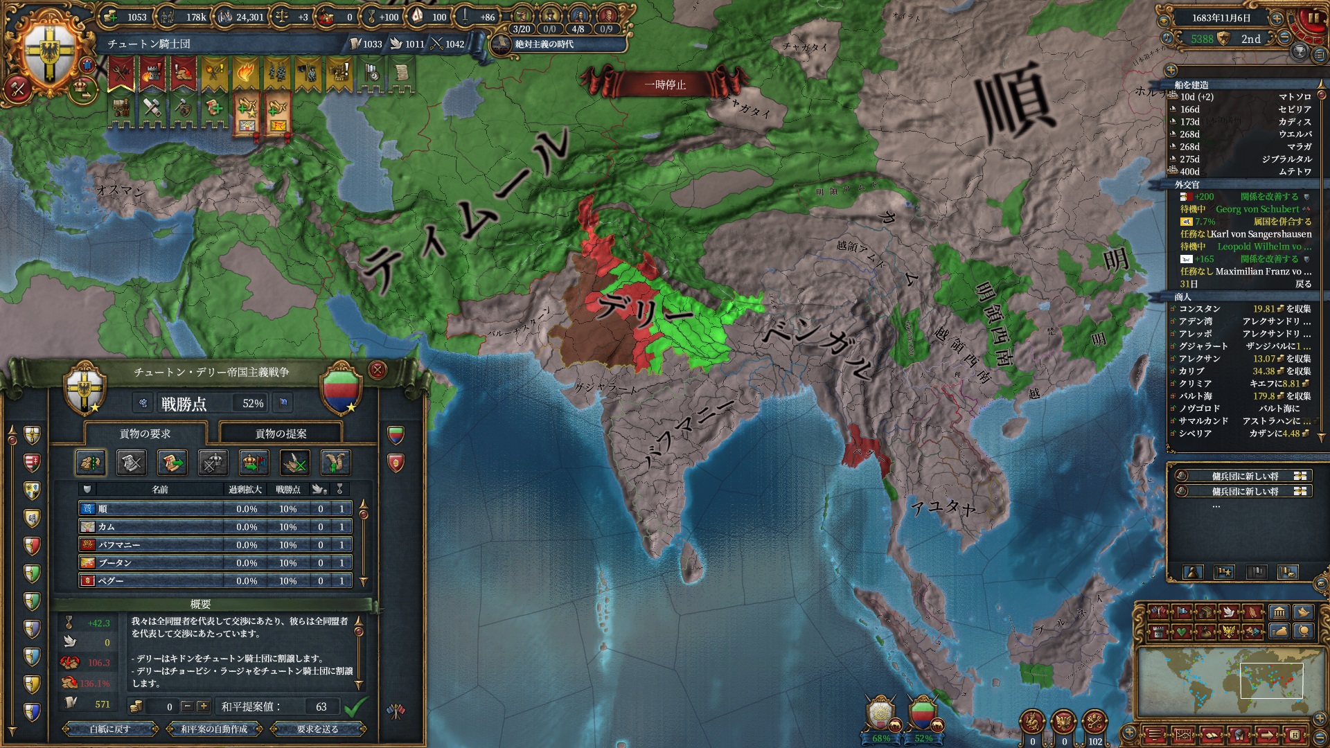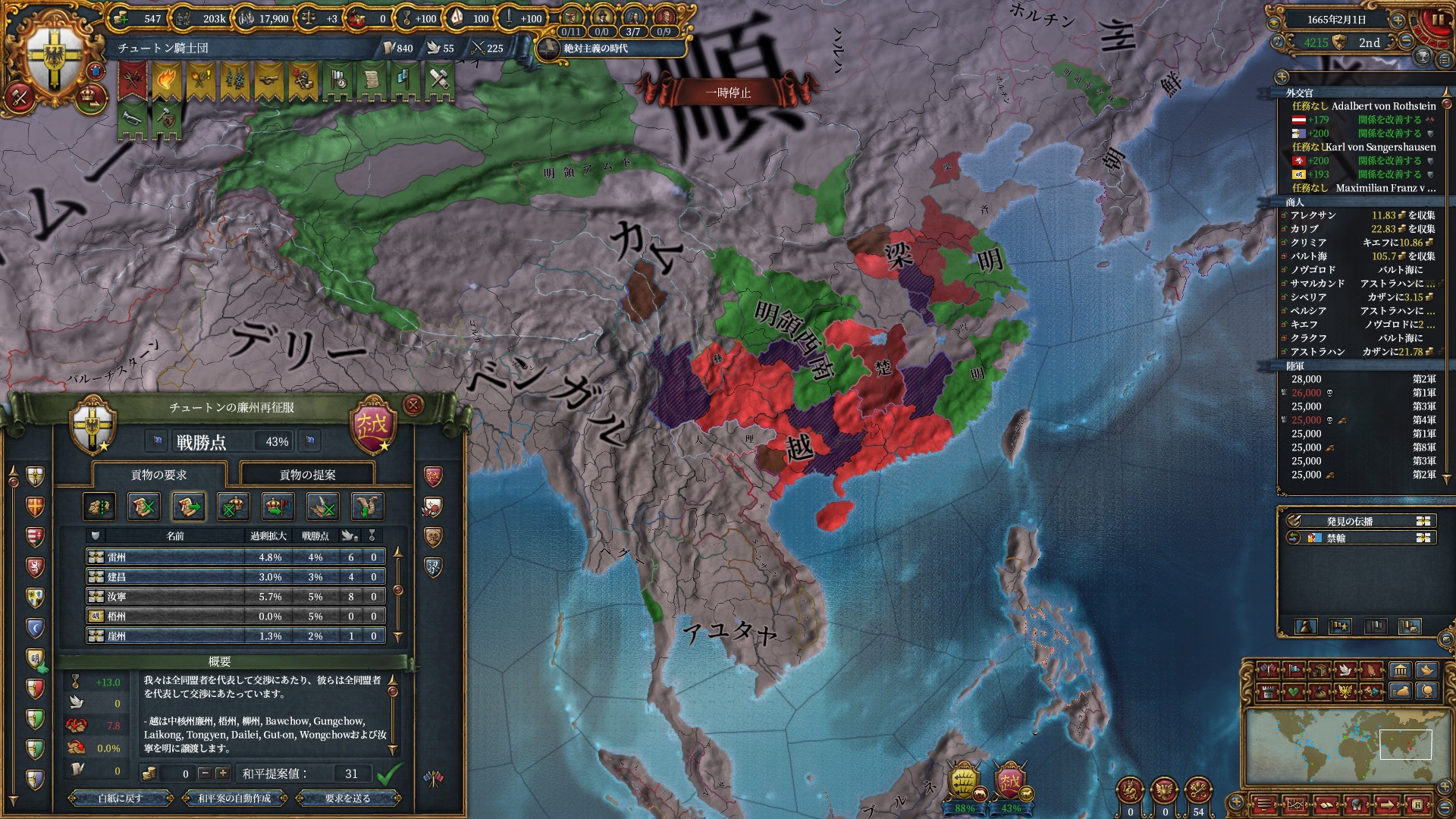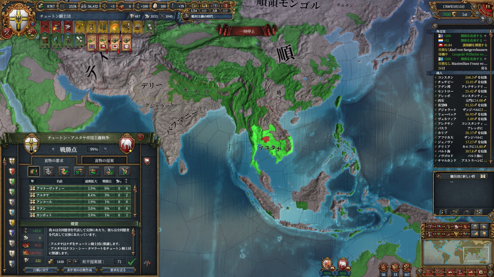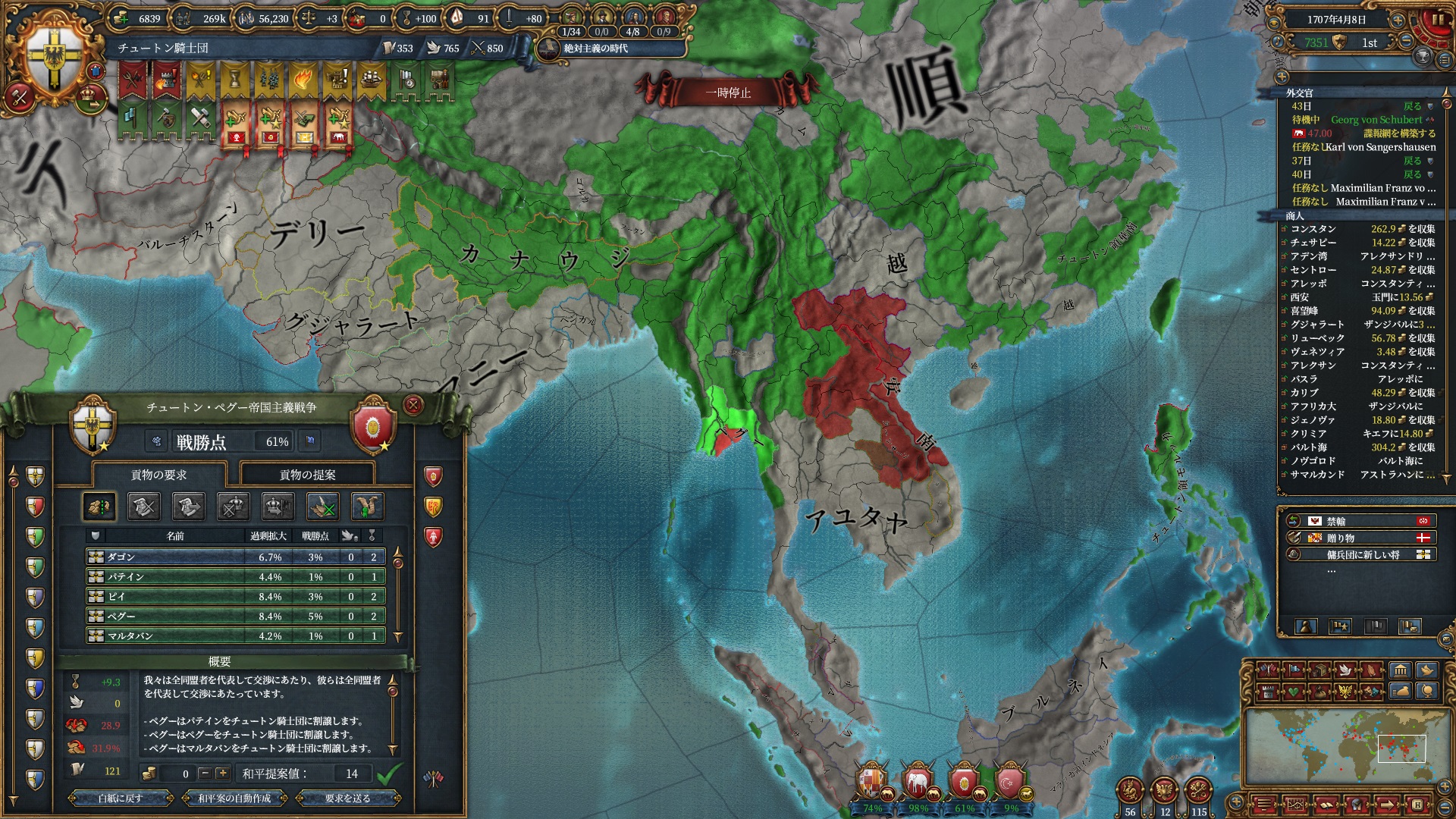 加えて同盟国で付いてきたアユタヤからも1州確保し東南アジアの橋頭堡を得る事に成功しています。