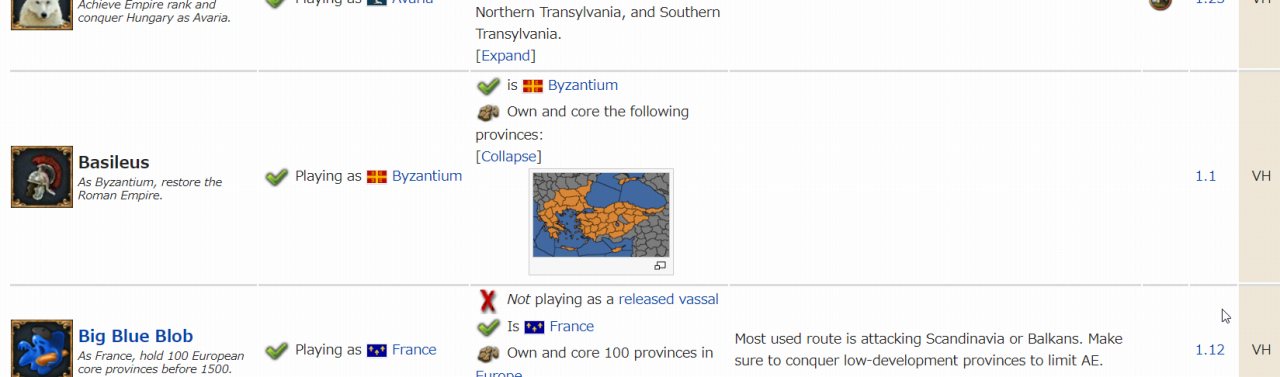 なお、バージョンアップでまた必要なプロビンスが大きく変わることがあると思うので今後実績に挑戦される方は注意してください。Wiki探索もゲームの一環とは言いますが、やはりゲーム内で表示される情報が一番正しいので・・・