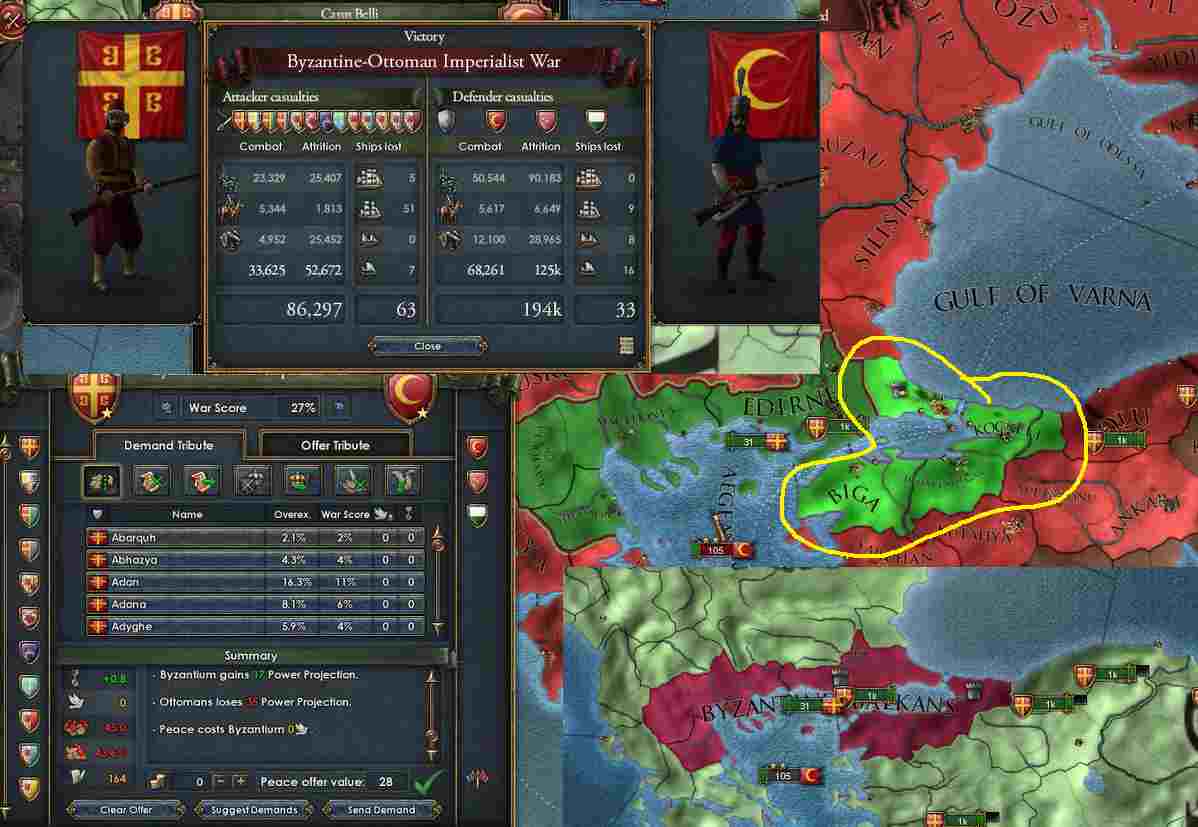 第三次オスマン戦争でも第一回、二回と同様に少量の戦勝点でプロビを奪う戦法に出ますが、そろそろ一回で奪える戦勝点も多くなってきます。