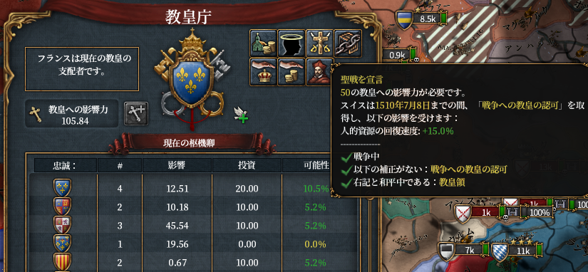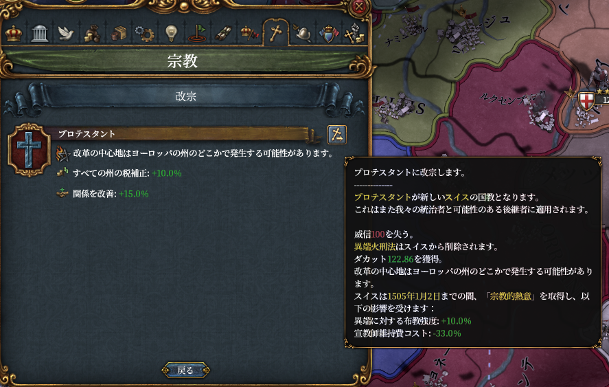 あれでブルゴーニュも吹っ切れたようでプファルツ戦中に宗教改革が発生しておりました。