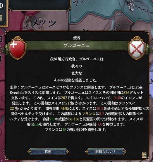 プファルツ使節「どうやらブルゴーニュからメッツ(HRE州)を取り戻すことに成功したようですな。」