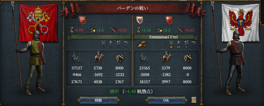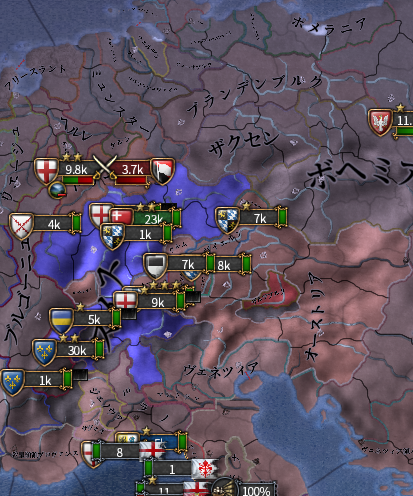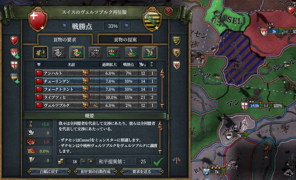 対して苦戦もせず講和。同盟国ミュンスターにも1州あげています。