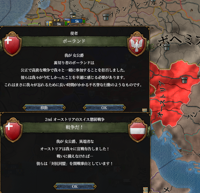 アンジェラ女公「この地は先祖*3代々受け継がれたスイスの正当なる領土である。私が皇帝足りえんとしても、スイスの地は一寸とて渡さない!全軍突撃!」