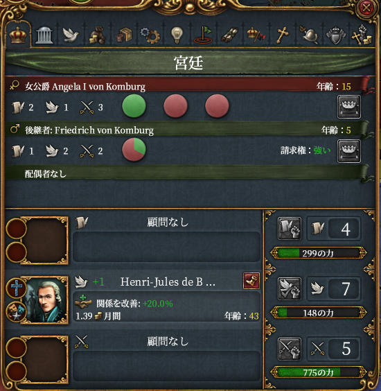 アンジェラちゃんも15歳となり即位、ところで公配もいないのに5歳の後継者がいるのですが…多分弟でしょうね。10歳で婚姻せずに子供がいるとかかなり妄想がはかどりますあり得ませんからね。