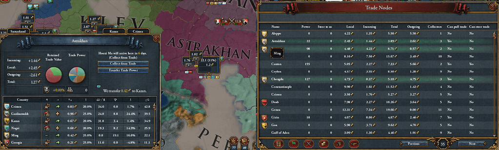 その結果として発生するイベントがThe closure of Chinaじゃ!明*11が保有するノードに、欧州SuperRegionに首都を持つ国家が商人を送ると発生する。