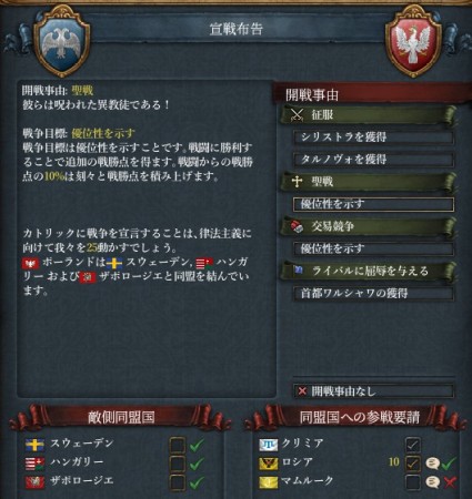 とはいえ先のポーランド攻めでキリスト教諸国を刺激したばかりだし、今後も西へは拡大予定。