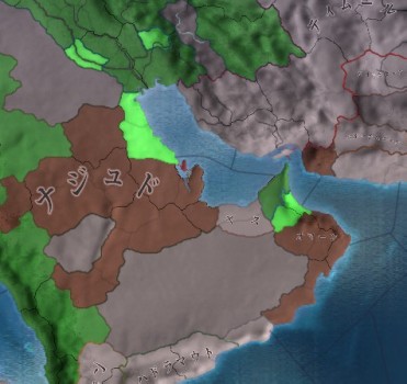 目標通りホルムズ海峡の南にオマーンと接する飛び地を獲得。あとは永久請求権のある州から8州を得ておる。