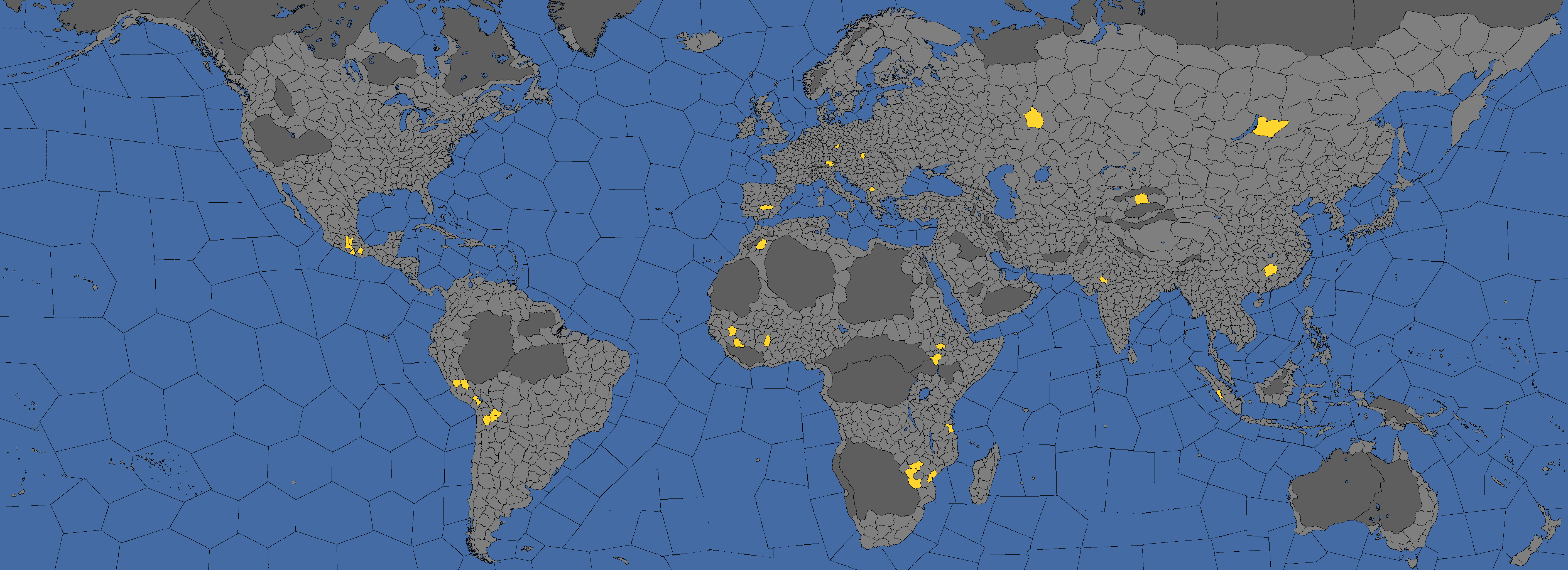 1444年時点の金産出州(交易品未決定の州などがあるため、ゲーム中にはこれ以外にも金産出州ができる可能性がある)
