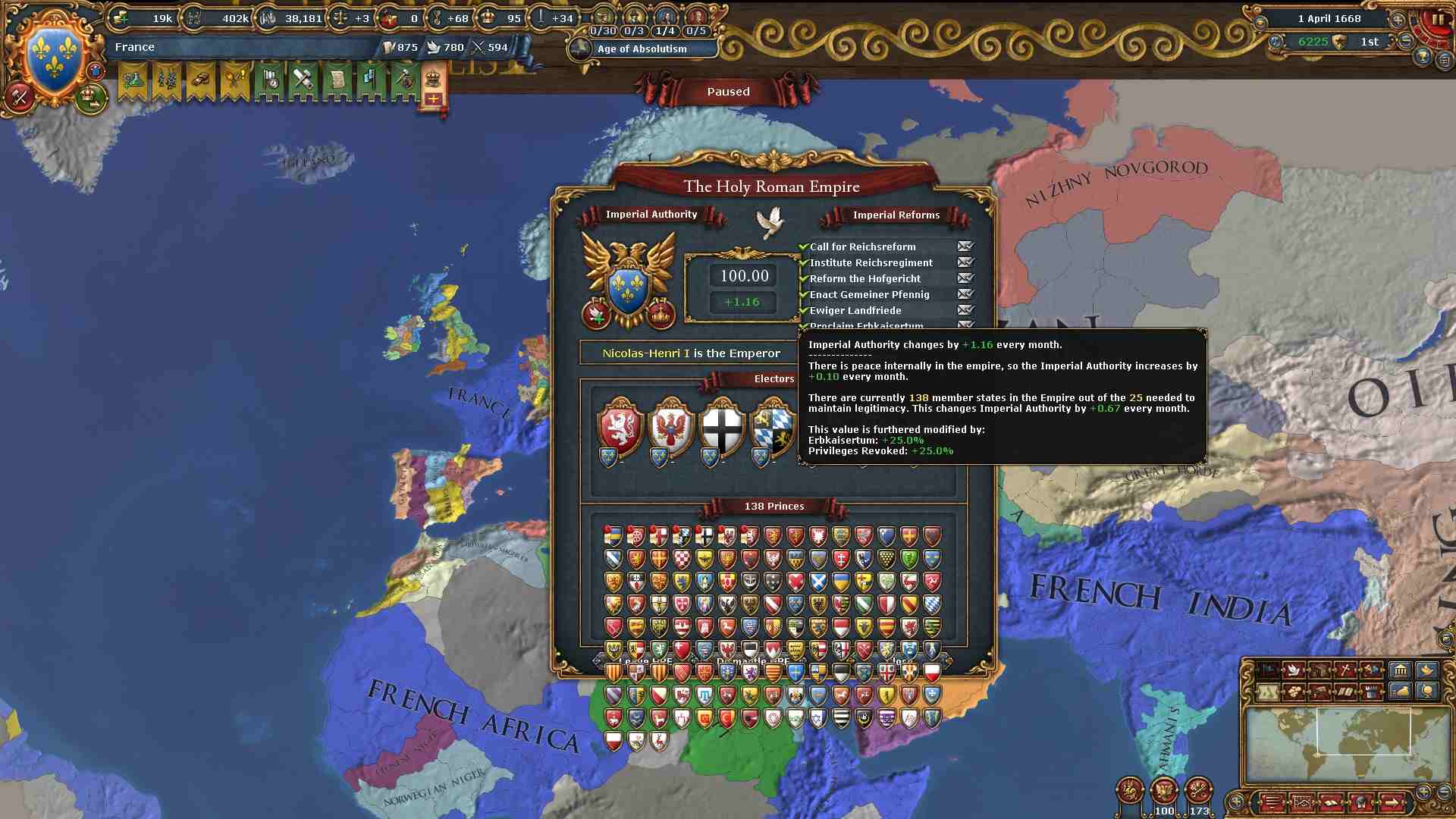 →お気遣いありがとうございます。お手軽な世界征服を行うために結果としてHRE諸侯が増えました。
