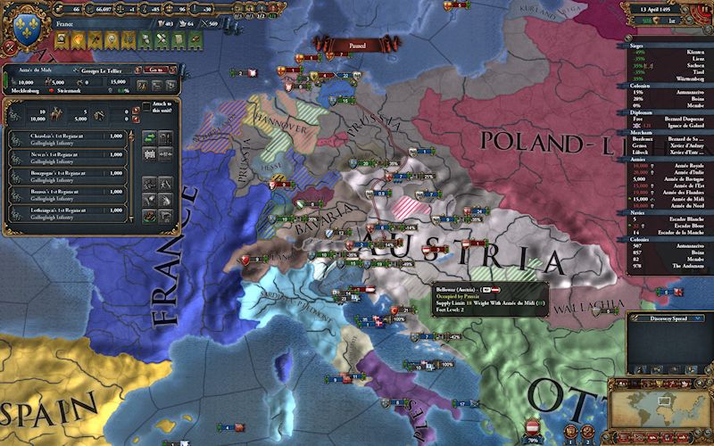 スクリーンショットを撮り忘れましたが、停戦期限が切れるたびに、オーストリアをボコってベルギー領を削っていました。