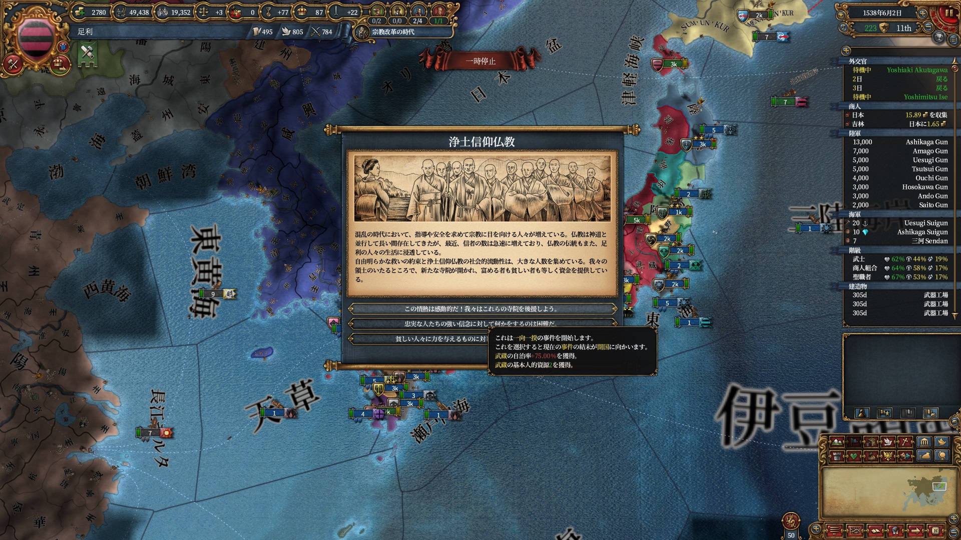 ここらで足利のNI「奉行衆と奉公衆(顧問コスト-15%)」が得られるようになりました。