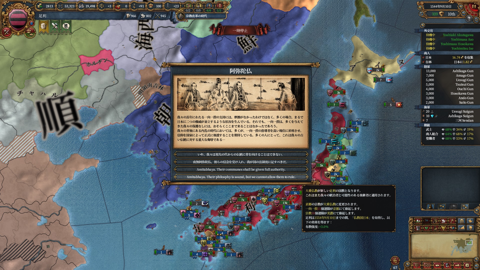 目当ては上座部仏教の補正''顧問コスト-10%'で、更に顧問が安くなります。LV4も格安で雇えます。