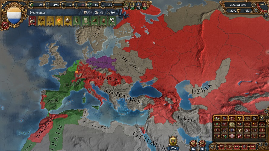 神聖ローマ戦争で成功を収めたシャヤカ1世の権威はかつてユトレヒトを率いてネーデルラント北部7州の統一を掲げていた時ほどに高まっていた。シャヤカ1世は残るネーデルラント2州の回収を掲げリンブルク・ルクセンブルクを領有するトリーア選帝侯領へと進軍した。トリーアを保護すべく神聖ローマ皇帝のオーストリアがネーデルラントに宣戦を布告し、続てオーストリアの同盟国であるロシア帝国が参戦した。さらにフランス・スペインはネーデルラント帝国を援助すべくこれに参戦し、ついには西欧連合対ハプスブルク=ロシア連合の体を成した。