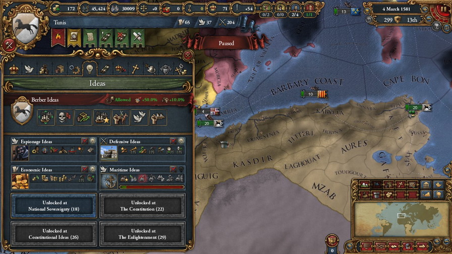 また海賊行為でも海軍伝統は貯まるので、軍事力の維持にも繋がります。積極的な戦争はしませんが、海軍伝統は常に60以上を保ちます。