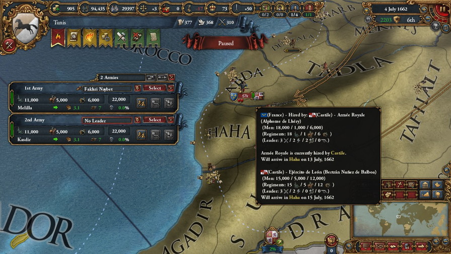 とりあえず要塞で時間を稼ぎ、Covert_ActionでCastileのCorruptionを上げました。