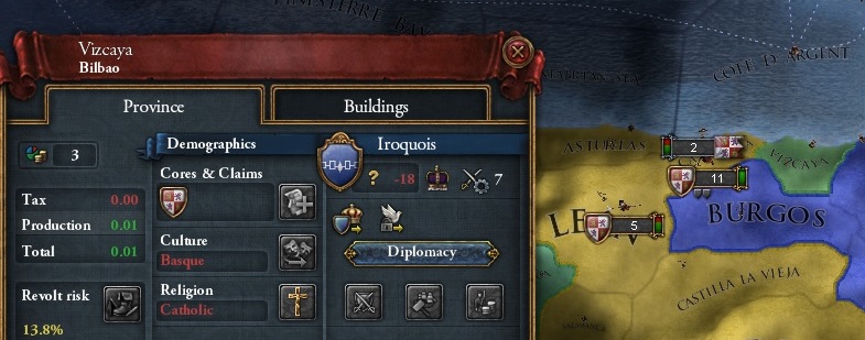「おい、待て。 Iroquoisがイベリアに領土持ってるんだが」
