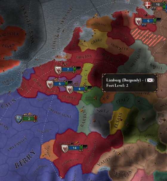 Burgundy自体も宗教戦争で国内ボロボロの状態にあり、Brandenburg単体で十分に事足りると判断し