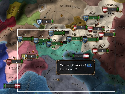 Aragon側ではAustria・Milan・Veniceが参戦し