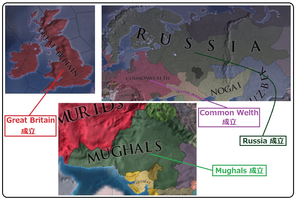 非西洋諸国のCommonwelth・Iroquois・Mughals・Ottomans・Russiaの中で