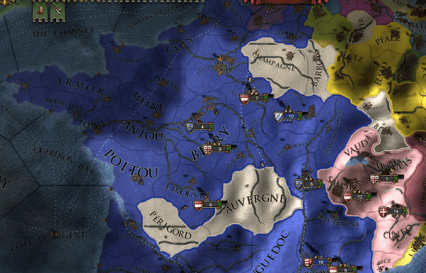 フランス内にかつて存在したギュイエンヌやシャンパーニュのコアは消滅しており、フランス領内にコモンウェルスの属国を建国することはできませんでした。