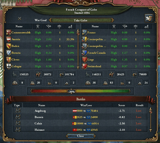 ゲーレ防衛戦争ではオーストリア軍が質と量を兼ね備えるフランス軍に苦戦していましたが、コモンウェルス軍の到着で息を吹き返しました。