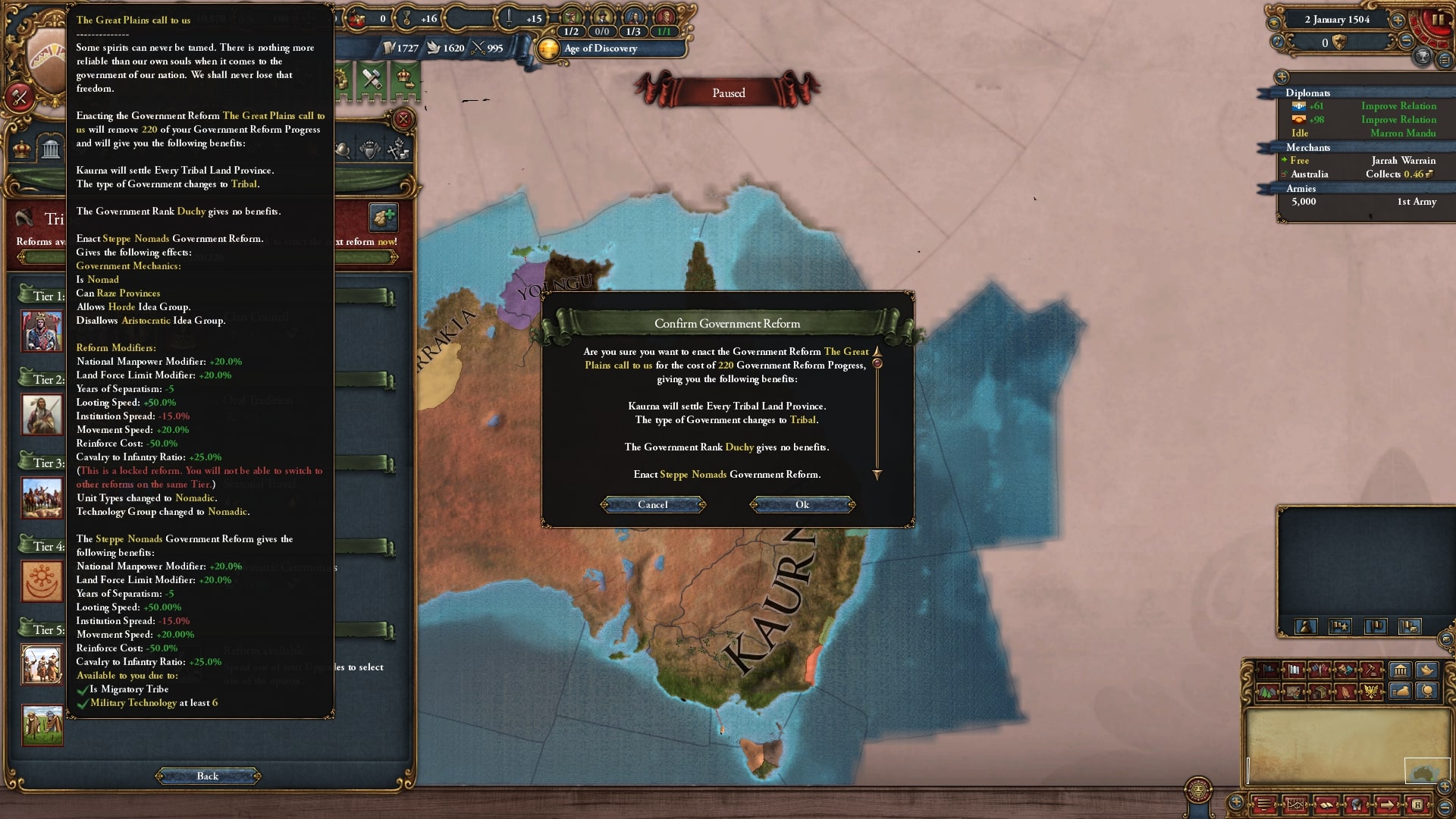 オーストラリアでの動きは省略。1504年に遊牧民化。