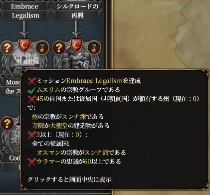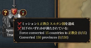 これを達成すると異教戦勝点コスト-5%と真の寛容度+1(直轄)か外交枠+1(それ以外で)が貰えます。