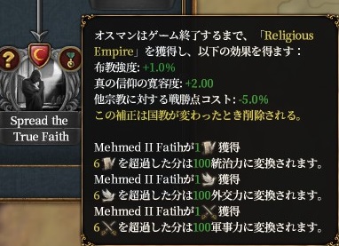 実績 Mehmet's Ambitionでもメッカやメディナの改宗は面倒ですが、戦勝点コスト減は役に立ちそうです。