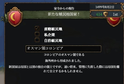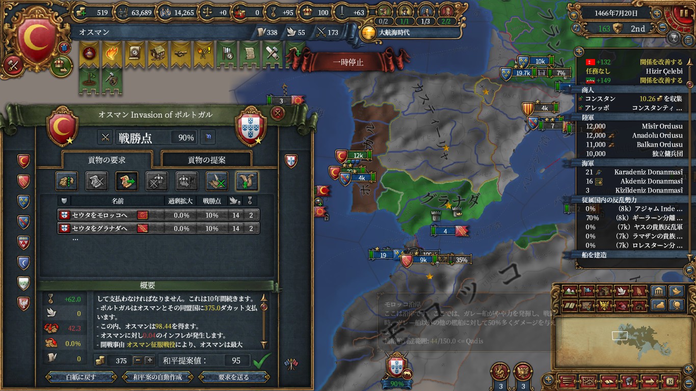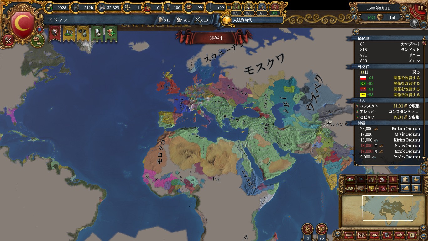 今回のオスマンは植民もする予定であるため、新大陸への距離を稼ぐためです。