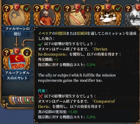 異教州税補正特権、指揮官+1貴族ウラマー忠誠減、異教寛容特権