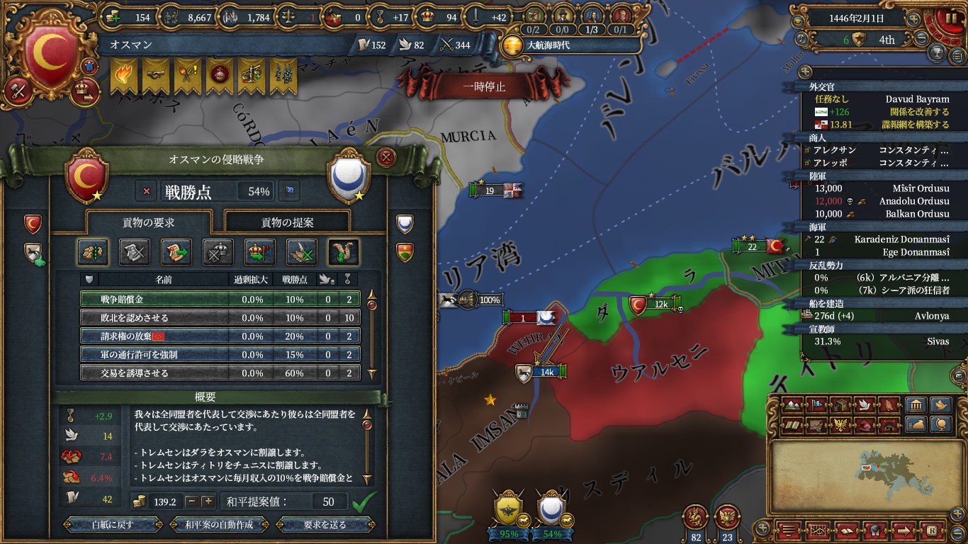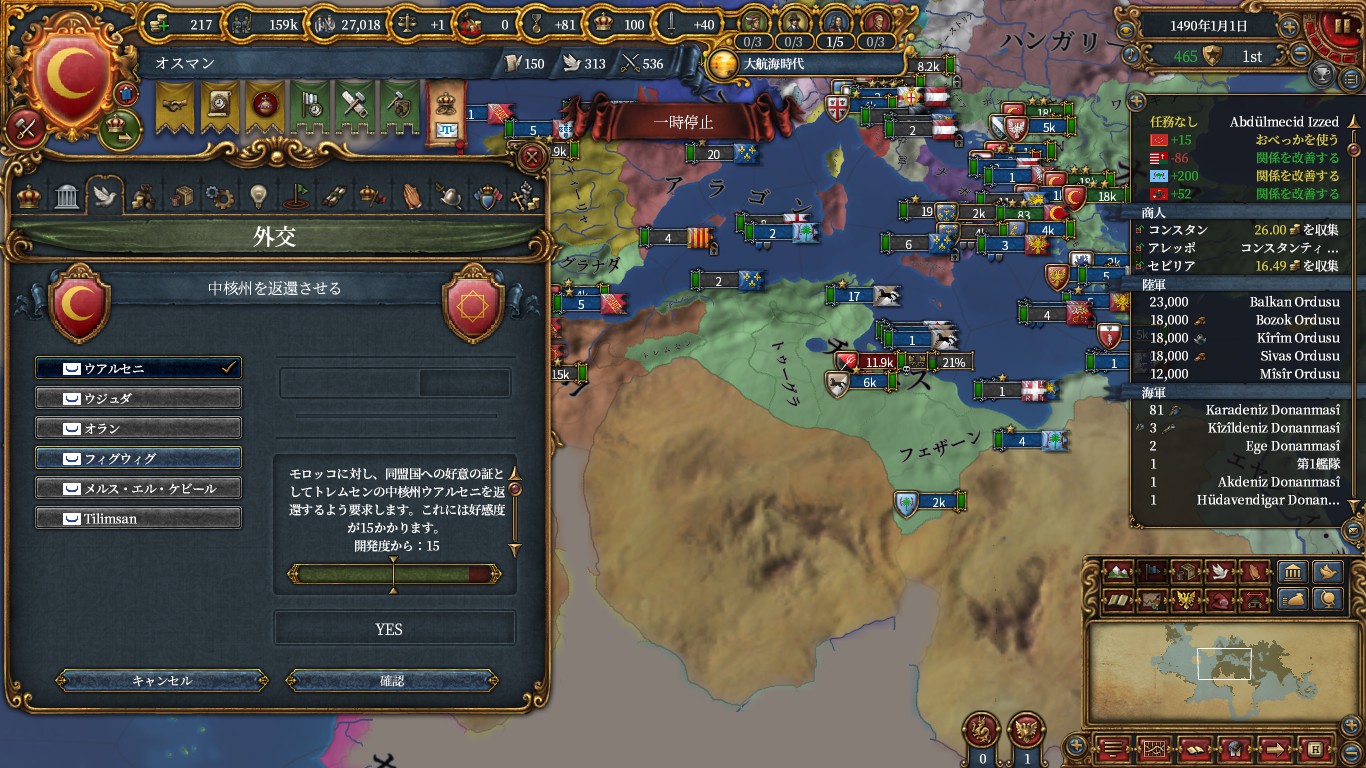 トレムセンを解放し、同盟モロッコからアルジェ地域の州を属国込みで6つ以上持てるように変換してもらいます。